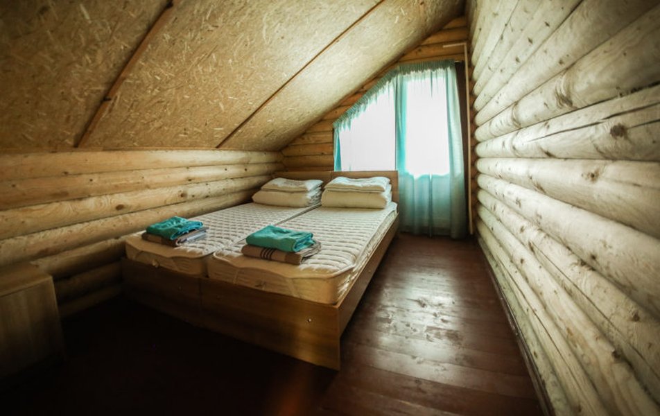 В коттедже: диван раскладной, кровати односпальные /одна двуспальная кровать: в каждой спальне, кухонная мебель, прикроватные тумбочки, стол, стулья, мини-кухня, мини-холодильник, набор посуды, плита электрическая, телевизор, электрочайник