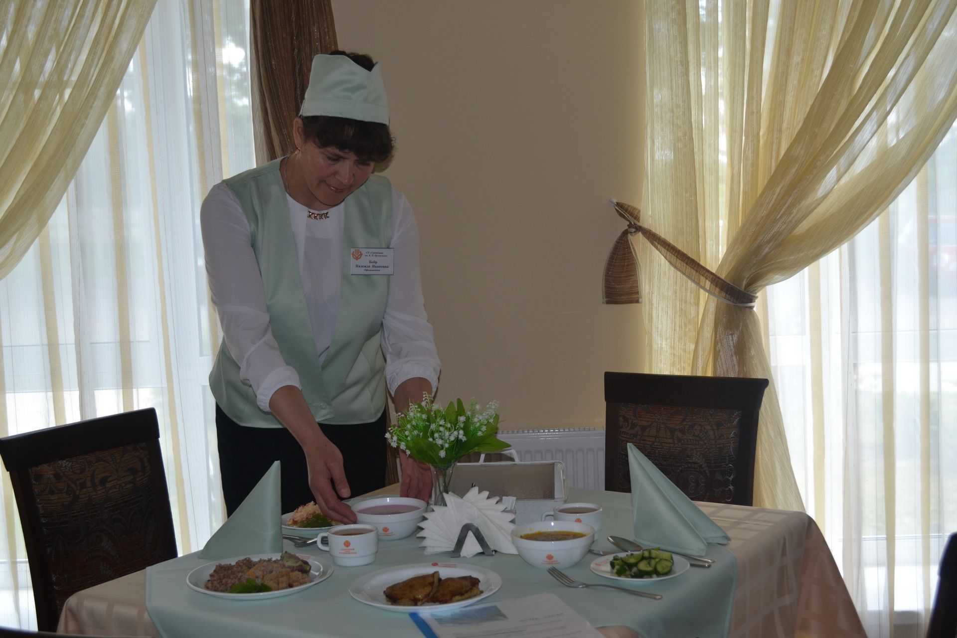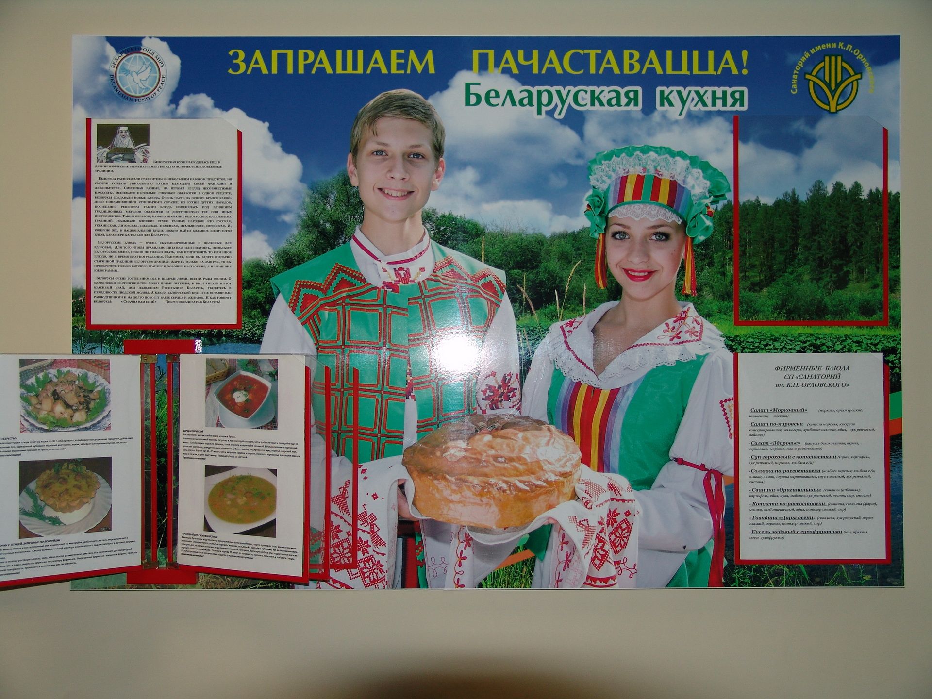 В санатории «Им. К.П. Орловского» организовано 5-разовое питание по заказному меню с элементами «шведского стола» (ежедневный отпуск салатов и овощей), работает буфет. Столовая санатория состоит из обеденного зала на 100 мест и банкетного зала на 10 мест. На столах у отдыхающих вкусные первые и вторые блюда, всегда свежие овощи и фрукты, натуральные соки, в меню много белорусских национальных блюд, широко используются овощи и фрукты, морепродукты морская рыба, соки, молочные продукты и др.