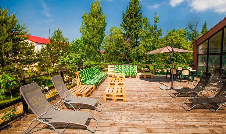 Для любителей тихого отдыха на территории оборудована комфортная площадка для полуденного отдыха в стиле лофт с мягкими шезлонгами под тенью навеса. Для подвижной детворы безопасная игровая зона, а также детская комната, видеозал, аттракционы, анимация. Для любителей рыбной ловли есть зарыбленный пруд. Для отдыха больших компаний предусмотрены оснащенные площадки для барбекю, где могут разместиться до 20 человек.