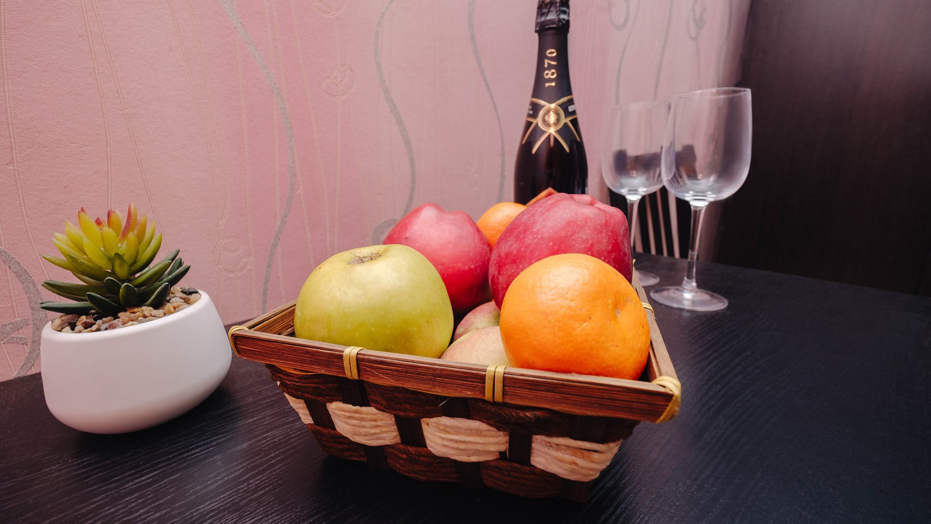 В номере: двуспальная кровать, прикроватные тумбы, стол, стулья, диван или кресло-кровать, шкаф, холодильник, плоский телевизор, кондиционер, чайник, утюг (на этаже)