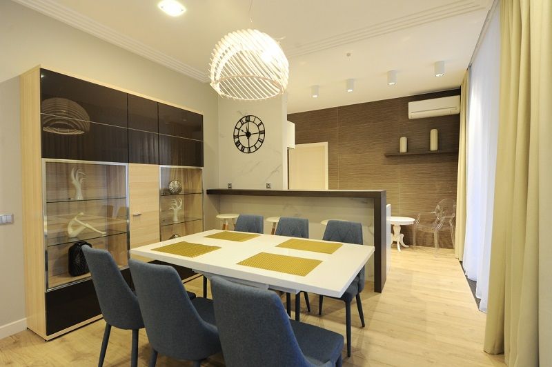 В номере: две комнаты: спальня и гостиная с кухней, кровати односпальные /одна двуспальная кровать, прикроватные тумбочки, стол, стулья, шкаф, мягкая мебель, мини-кухня, обеденный гарнитур, кондиционер, кофемашина, микроволновая печь, набор посуды, телевизор, холодильник, электрочайник