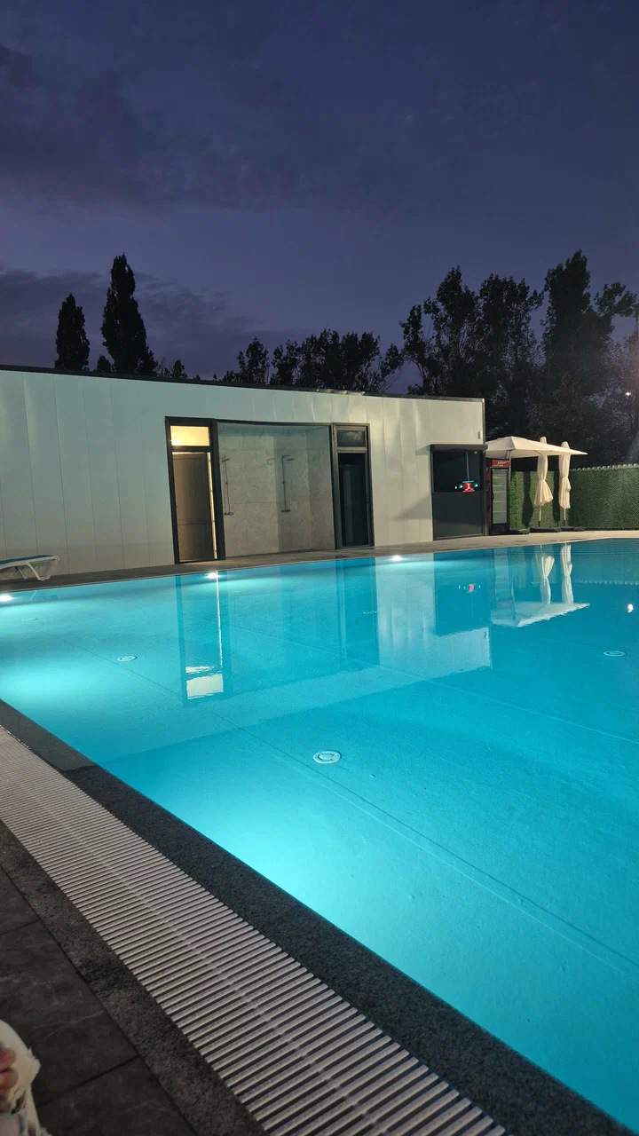 На территории оборудованы открытые подогреваемые бассейны с постоянной комфортной температурой. Зона отдыха вокруг них дополнена шезлонгами, столиками и зонтами. Бассейн разделён на взрослую и детскую зоны.
