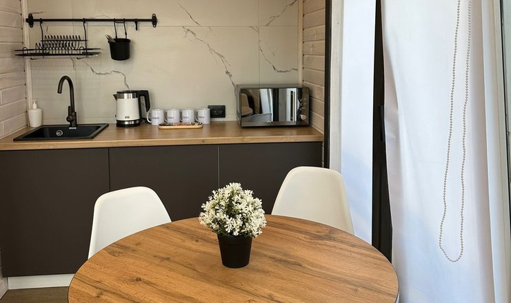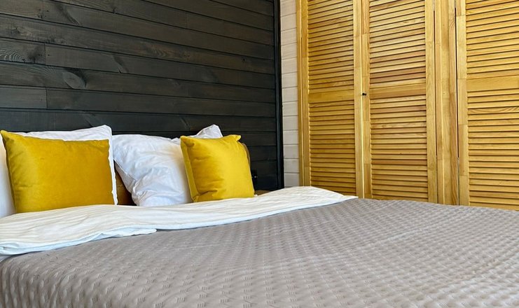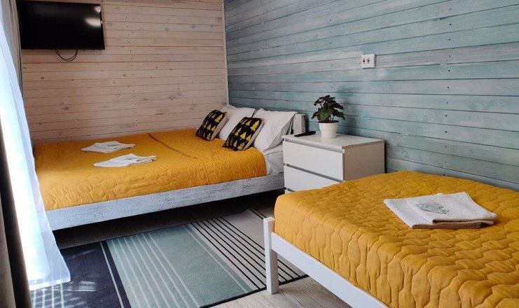 В доме: кресло-кровать, кровать двуспальная: 1 шт., кровать двухъярусная, прикроватный столик, стол, мини-кухня, микроволновая печь, набор посуды, телевизор, холодильник, электрочайник