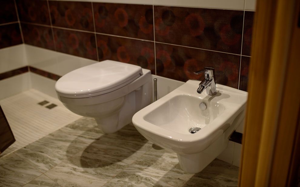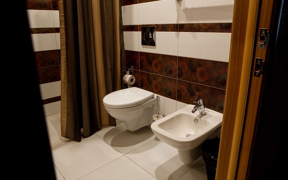 Санузел: душ, раковина, унитаз, биде, фен